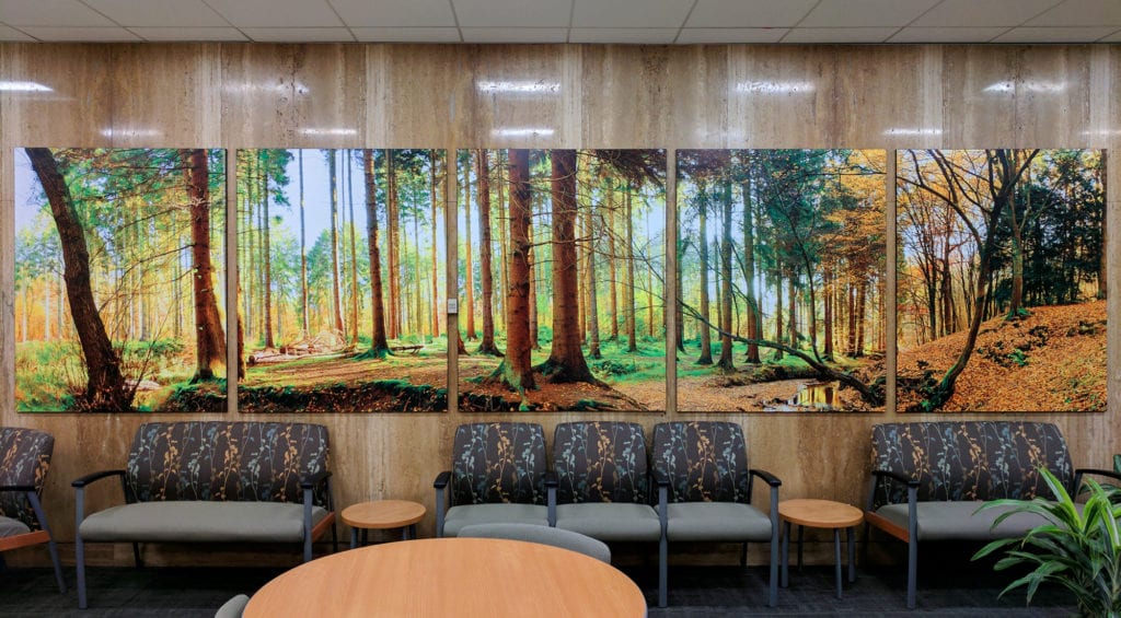 At Unique Imaging Concepts we use dye sublimation printing to embed high resolution, large format images on a variety of unique surfaces including wood, metal, and fabric. For most of our clients and projects we print on ChromaLuxe sublimation substrates produced in the USA. ChromaLuxe sublimation substrates offer unsurpassed color vibrancy and detailed resolution in a durable, archival quality image. Because ChromaLuxe aluminum and wood panels are so durable, there is no need to put your finished prints behind glass. This means cost savings for clients that need ready-to-hang prints.